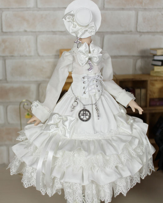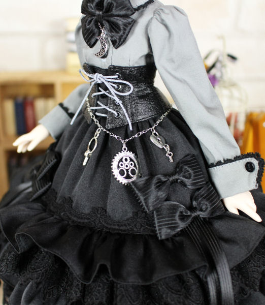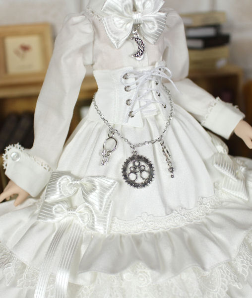 ブラウス、スカート、コルセット、ミニハット、リボンブローチ、