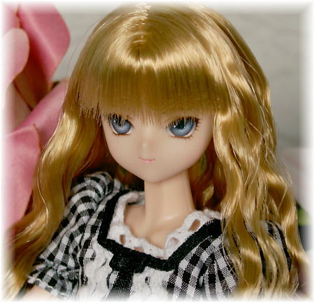 3万記念カウプレ用の子です。 今回は、ミニヘッドにしてみました。 ナマイキ顔のツリ目ちゃんです。 髪は新色のハニーゴールドです。 ソバージュにして、ふとももくらいの長さでカットしています。