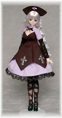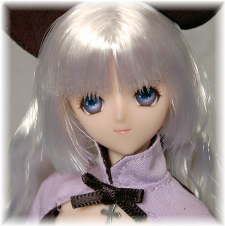 フルセット・ドールのもうひとりは、 タレ目(ふつう目?)に、ホワイト髪にしました。 髪に、衣装の藤色が映ってきれいです(*^o^*)