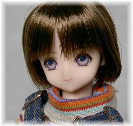 ショートヘアの、快活なイメージのミディちゃんです。 悪戯っぽい表情になりました。 瞳は、ピンクベースに紫のグラデーションです。 リップは、ピンクでラインを入れました。 髪型は、軽く内巻きにしたショートヘアです。