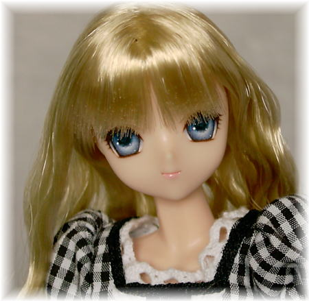 ミニヘッドのツリ目ちゃんです。 あまりキツくない、甘めのお顔になりました。 髪は、ロングソバージュです。 太ももくらいの長さで切りそろえています。