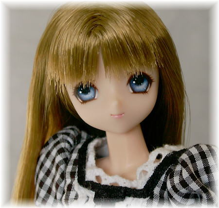 ミニちゃんは、作るといつも、 どことなく大人びた表情になります。ふしぎです。 髪型は、ロングストレートです。 太ももくらいの長さで切りそろえています。