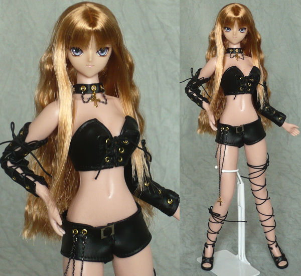 いちおうフルセットドールです。 が、衣装の出来が悪いので、衣装はおまけ程度と思ってください。 ボディはエレガントボディです。 瞳は、紫と青のグラデーションです。 髪は、サイドの髪はストレートで毛先にシャギーを入れました。 後ろ髪はソバージュです。