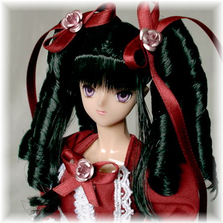 髪は、ツインテール植毛をお湯パーマで縦ロールにしました。