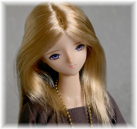 真ん中分けの髪型のお嬢さんを作りたいなあと ずっと思っていたのを、実現しました。 大人っぽい、おしとやかな感じの子になりました。 前髪は、サイドに流してお湯パーマして、 鎖骨を過ぎるくらいの長さでカットしました。 後ろ髪はストレートで、20センチ植毛そのまんまの長さです。 ほぼイメージ通りの髪型に出来上がりました。