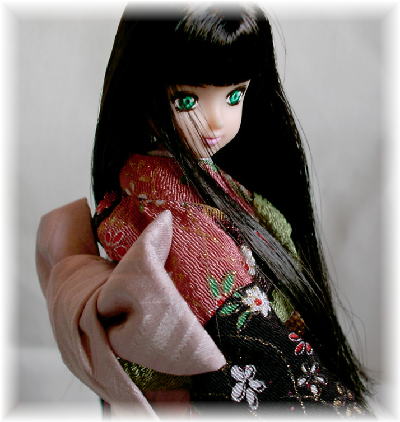 着物の似合う、日本的なきつめの表情の美人にしました。