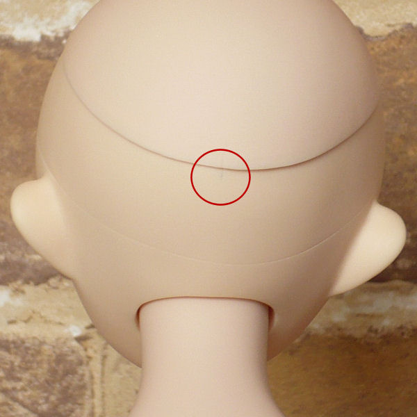 本体側、後頭部の中央のフチ部分に、緑っぽい色素沈着(?)があります。