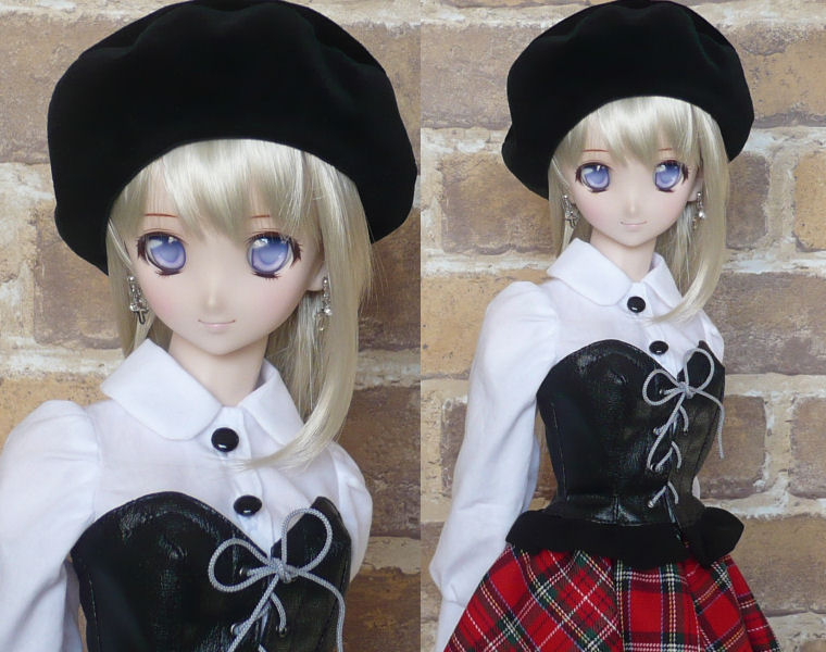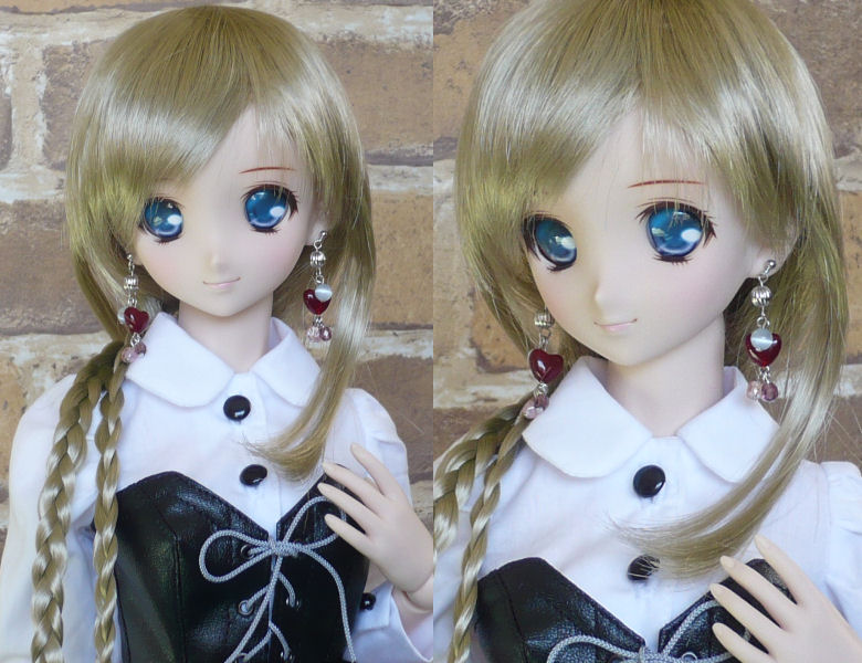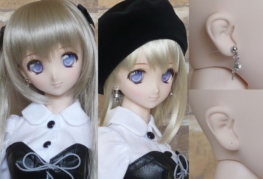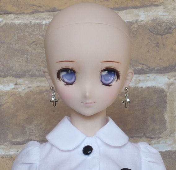 ショップ販売用に作った子です。 削りはしていません。 耳にピアス穴を開けて、ピアス付きにしました。初挑戦です。 アイは2組です。 (1)ボークスアニメティックアイズ Jタイプ 24mm すみれ (2)個人ディーラー製レジンアイ ブルー系