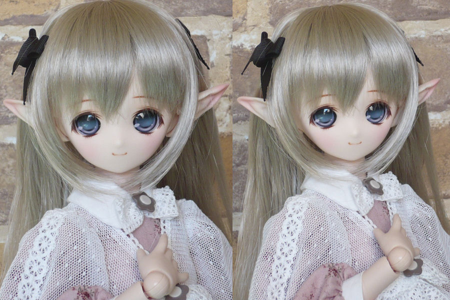 ショップ販売用に作った子です。 口のモールドを、削って消しています。 妖精耳つきです。 アイは1組です。 PARABOXアニメアイ 22mm・A・グレイ ↑こちらのモデルのボディはMDD、 ↓こちらのモデルのボディは、オビツ50です。