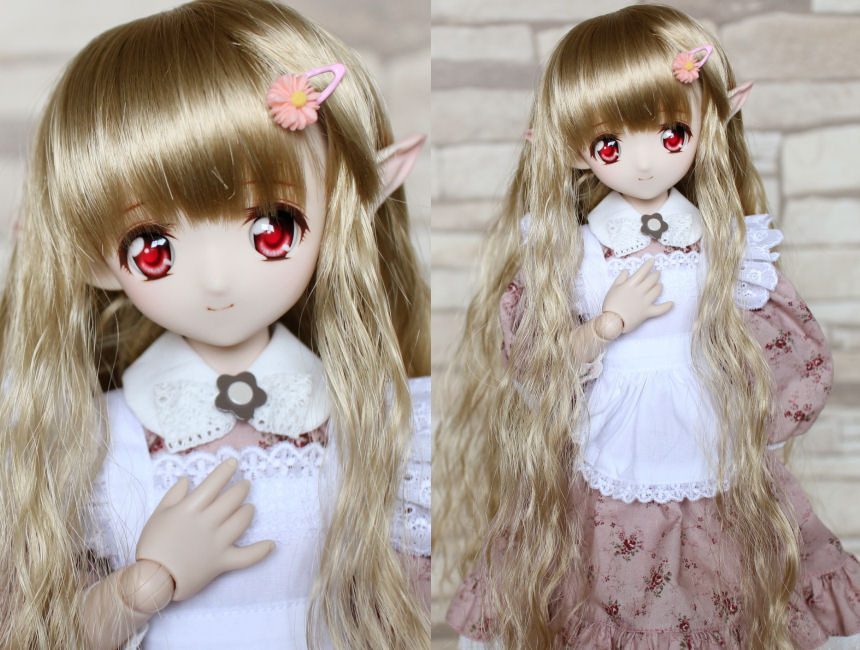 ショップ販売用に作った子です。 アイホール開け、口モールドを削って消しています。 妖精耳つきです。 アイは1組付きます。 ボークスアニメティックアイ Fタイプ 22mm あかね