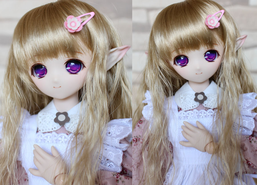 ショップ販売用に作った子です。 口モールドを削って消しています。 妖精耳つきです。 アイは1組付きます。 PARABOXアニメアイ 22mm A パープル