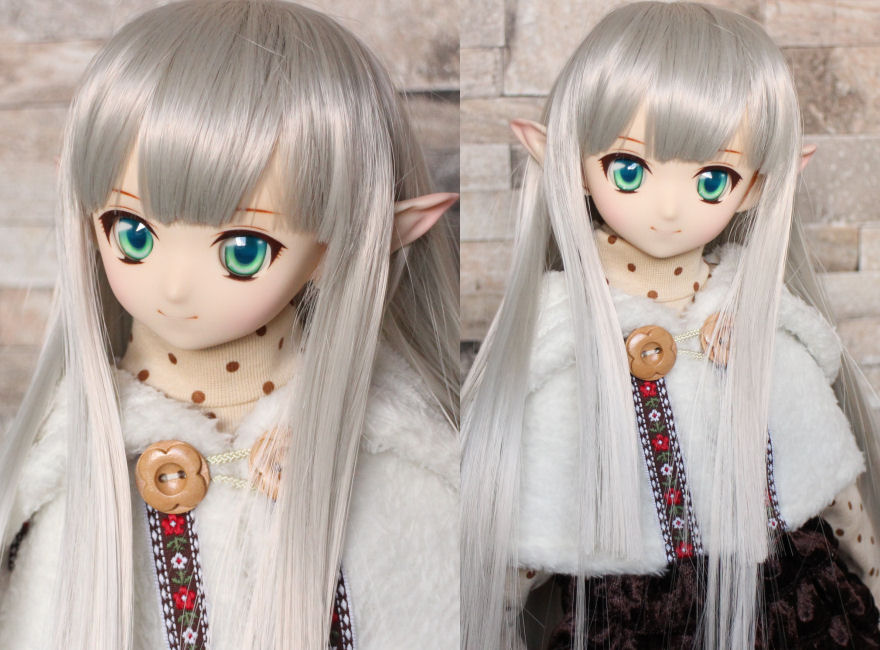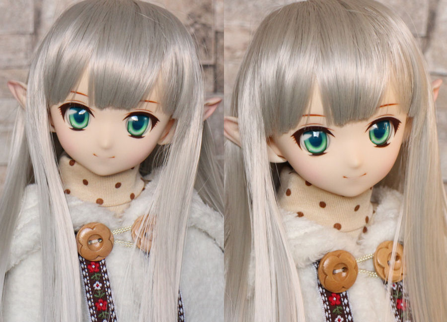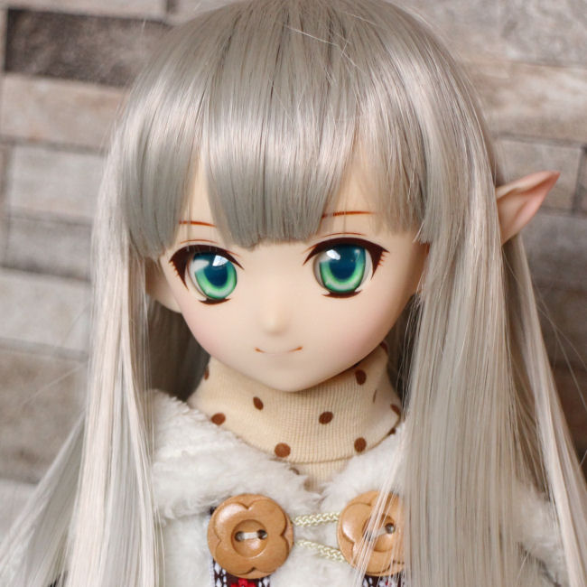 ショップ販売用に作った子です。 開眼カスタムしています。 口モールドは、アイホールとのバランスが取れていたので、珍しくそのまま残してあります。妖精耳つきです。 アイは1組付きます。 ボークスアニメティックアイズ Jタイプ 22mm わかば