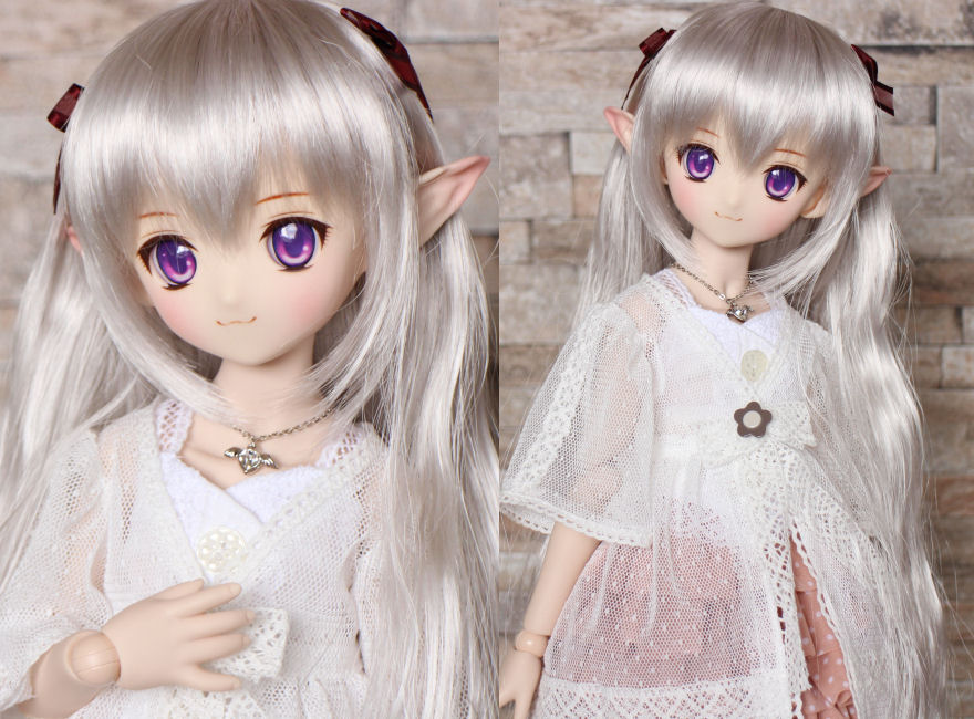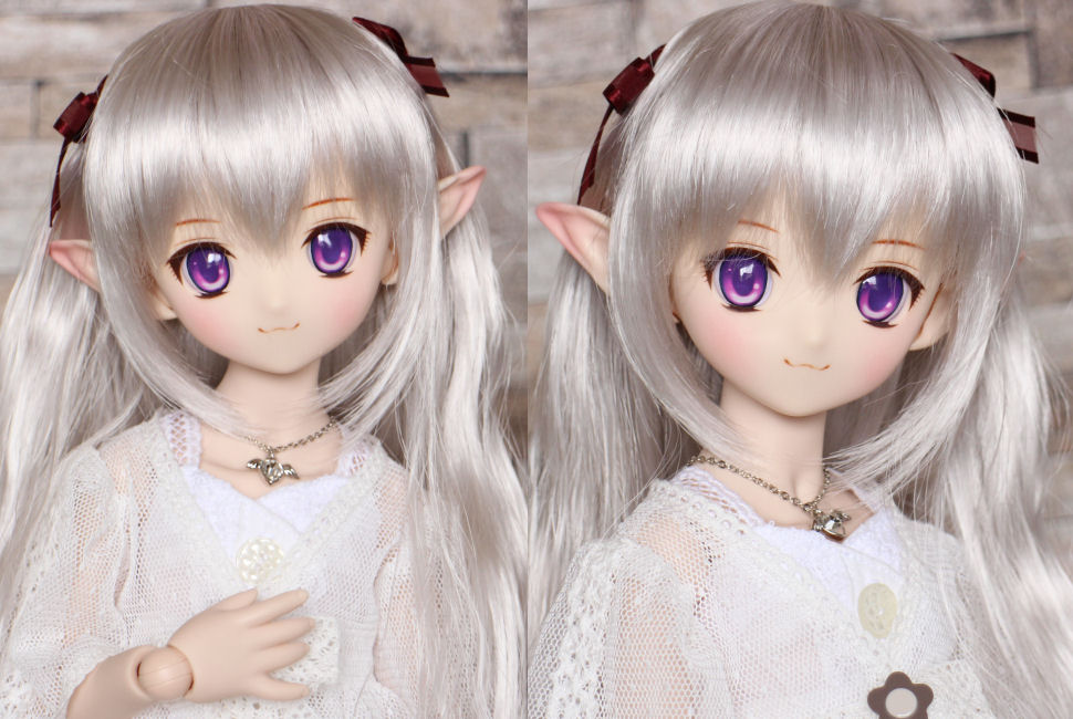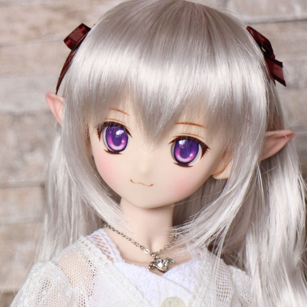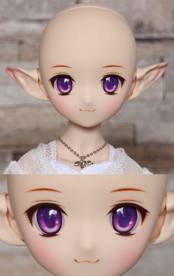 ショップ販売用に作った子です。開眼カスタムし、口モールドを削って消しています。妖精耳つきです。 アイは1組付きます。 PARABOXアニメアイ 22mm B パープル
