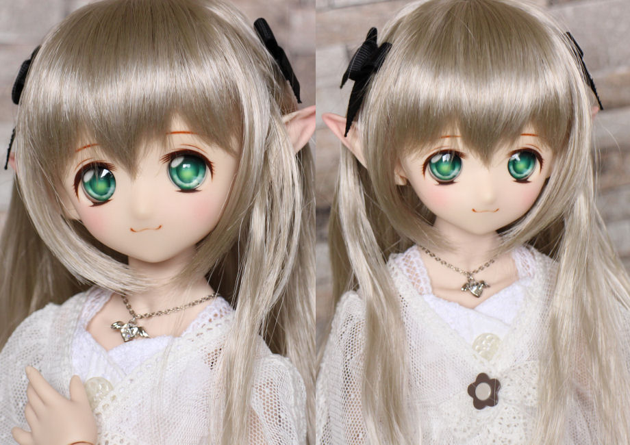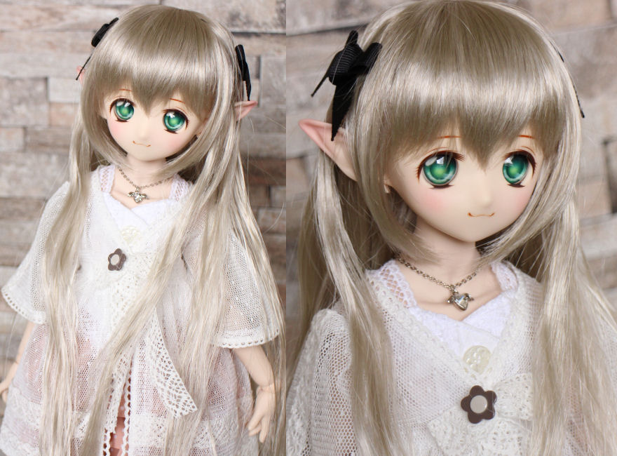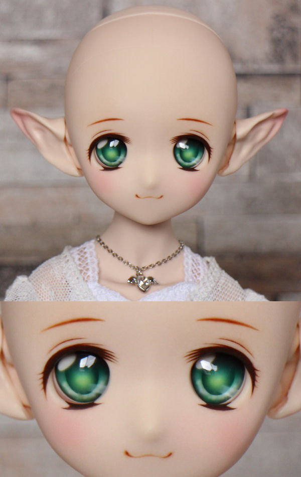 ショップ販売用に作った子です。開眼カスタムし、口モールドを削って消しています。妖精耳つきです。 アイは1組付きます。 ボークスアニメティックアイ 22mm K わかば