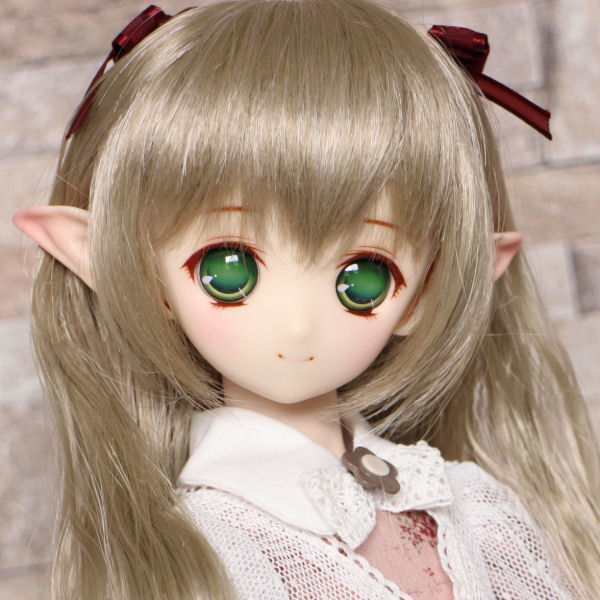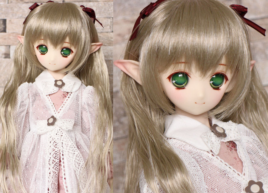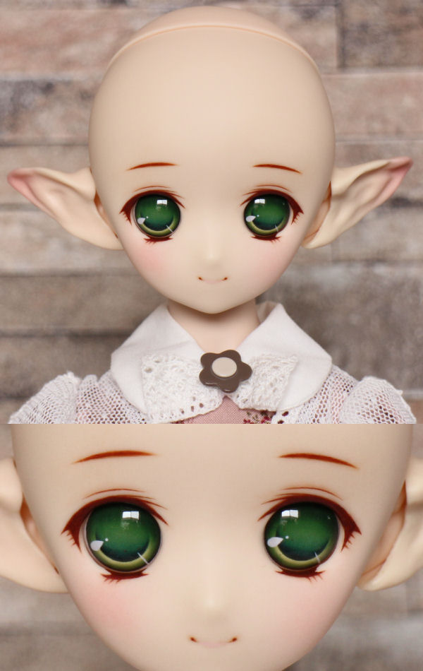 ショップ販売用に作った子です。 開眼カスタムしています。妖精耳つきです。 アイは1組付きます。 自作レジンアイ:丸02 苔森(こけもり)20mm【試作版】