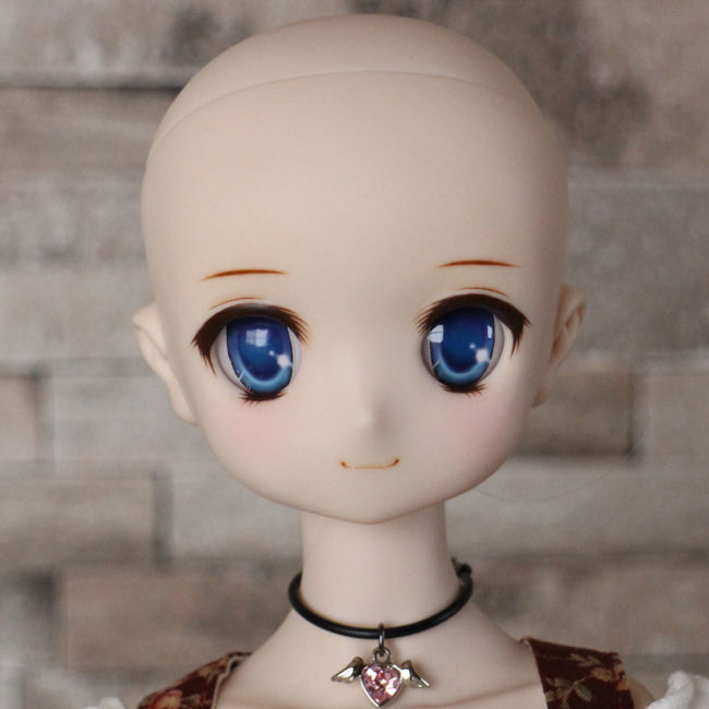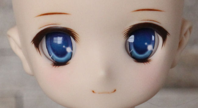 ショップ販売用に作った子です。 アイホールを開け、目元〜頬にかけて削っています。 アイは1組付きます。 自作レジンアイ:細01 浅葱(あさぎ)22mm