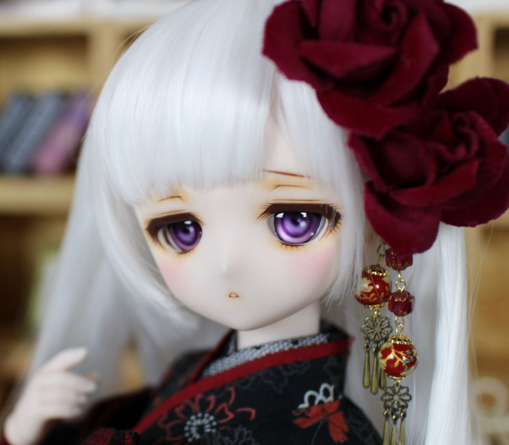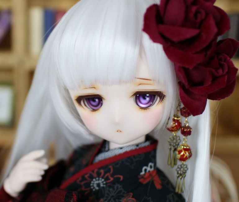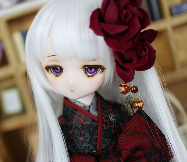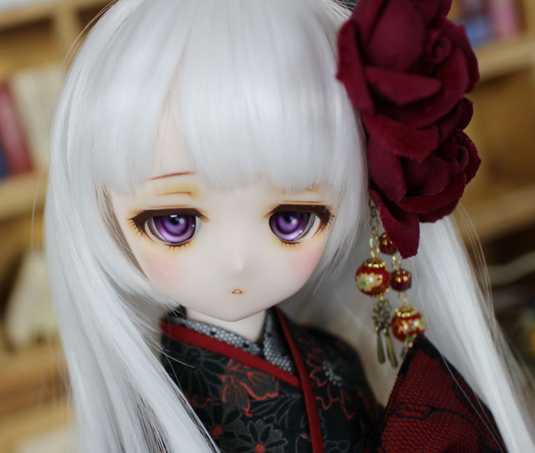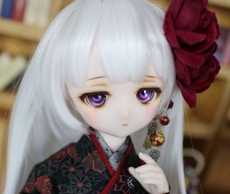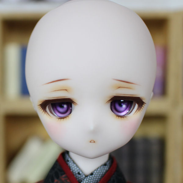 初めてソフビ盛りに挑戦してみました。 アイホールの上側を盛って、鼻と口を削っています。 初めてなのでソフビ盛りの出来はいまいちで、表面の仕上がりに難があります。 アイは自作レジンアイの長07 夕闇(ゆうやみ)24mmです。 あまり目立ちませんが、左右非対称眉にも挑戦しています。 左眉だけ見えると困り顔、右眉だけだとぼんやり顔、 両方見えていると呆れ顔に見えます!(主観)