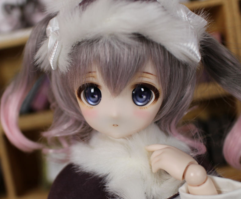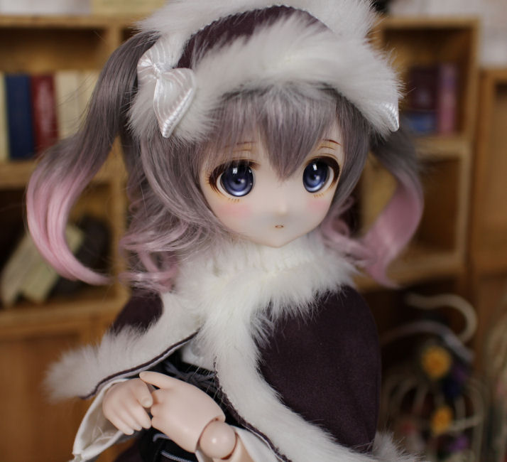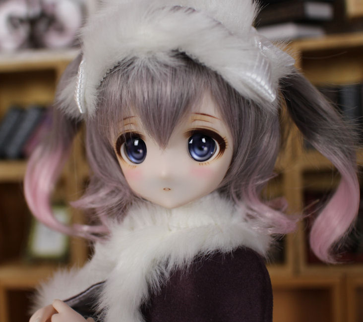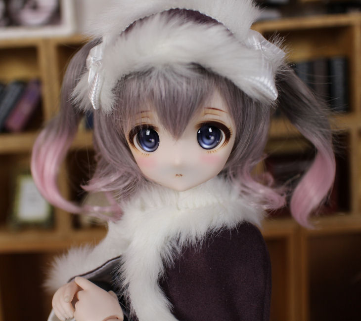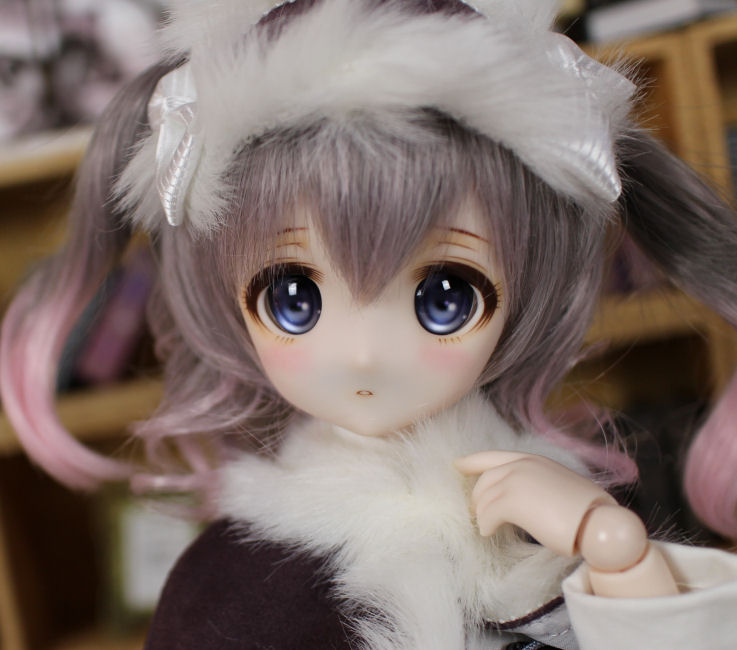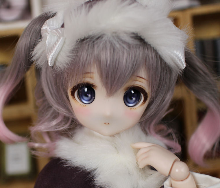 No.427に似た子を、とのリクエストで作った子です。 DWC#01ヘッドがもうなかったので、DDH-22で似た子に挑戦してみました。 口を平らに削って、お顔の下半分を整えるために削っています。 アイは自作レジンアイの長07 鈍色(にびいろ)24mmです。