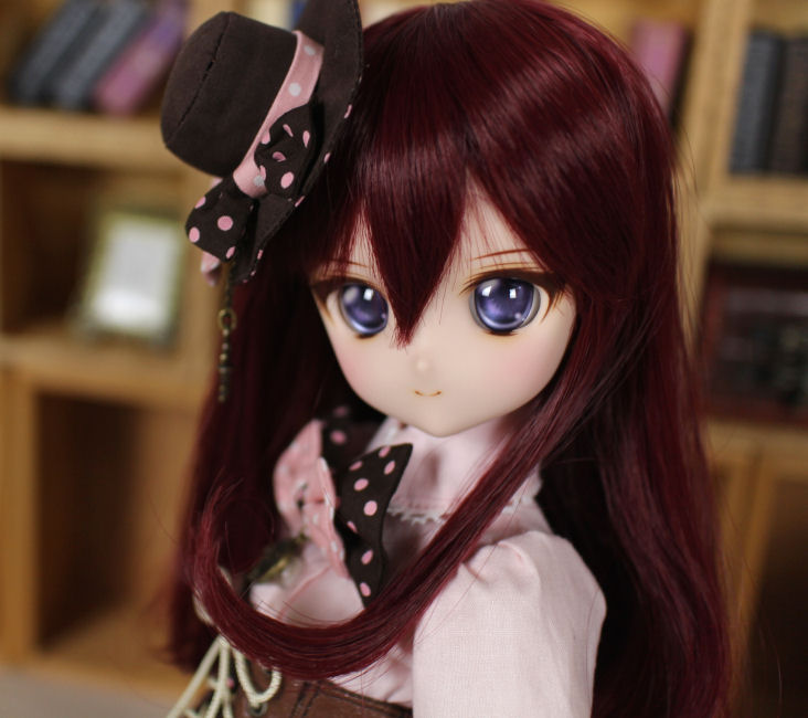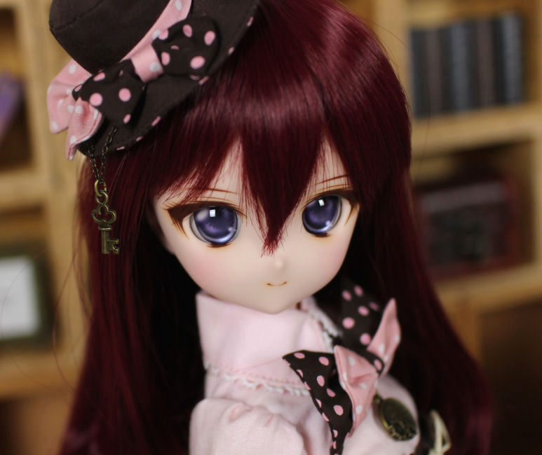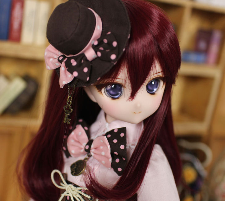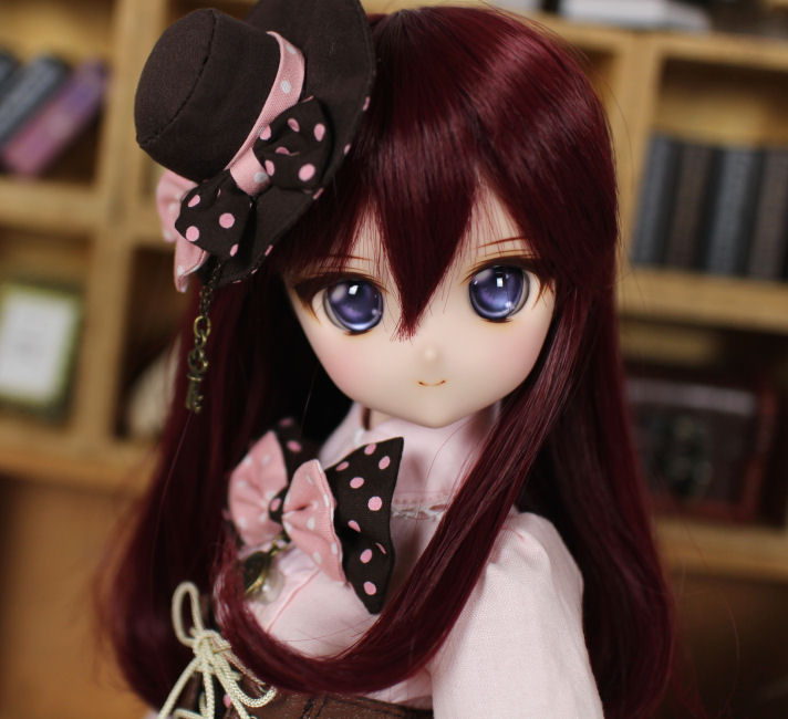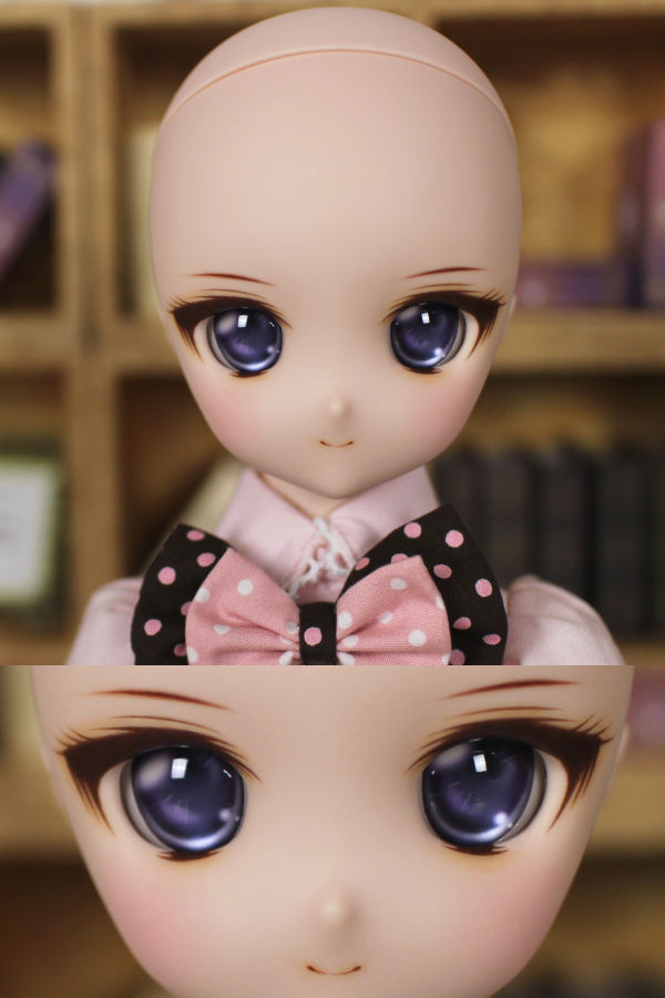 27ヘッドでツリ目+にっこり口にしてみました。悪だくみをしていそう? 削りはしていません。 アイは自作レジンアイの長06 鈍色(にびいろ)22mmです。