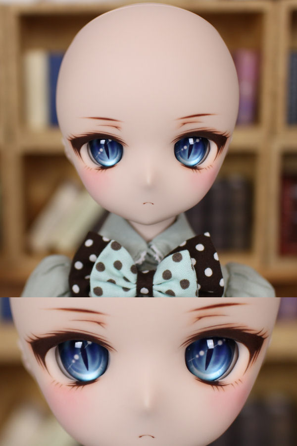 ツンなツリ目の01ちゃんです。下まつ毛増量してみました。 猫目アイがよく合ってると思います。 アイホールとその周辺、鼻、口を削っています。 アイは自作レジンアイの卵07 碧玉(へきぎょく)24mmです。