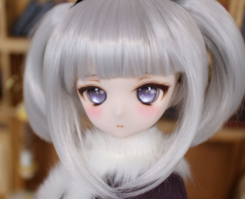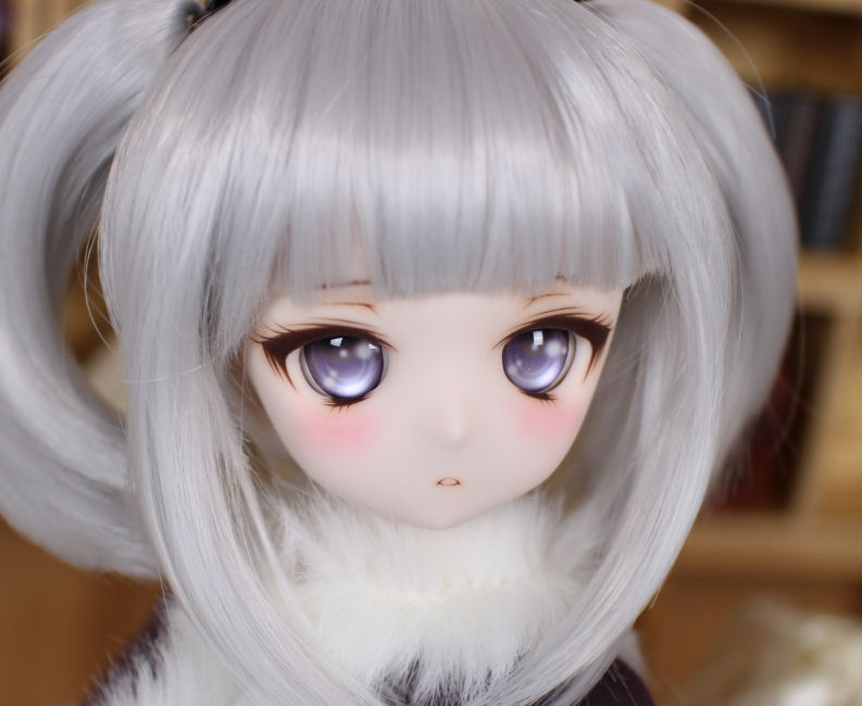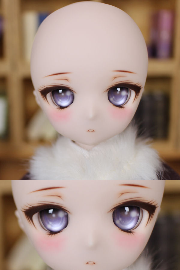 憂い顔の01ちゃん。 淡い色彩のアイを合わせて、ほわっとした雰囲気にしました。 アイホールとその周辺、鼻、口を削っています。 アイは自作レジンアイの長10 藤花(とうか)24mmです。