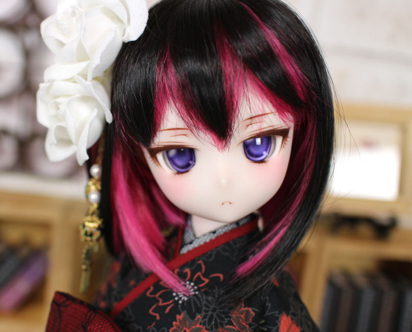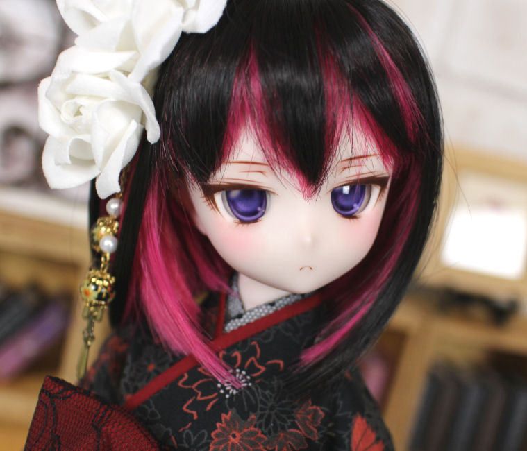 アイは自作カボションアイの長06 紫紺(しこん)22mmです。