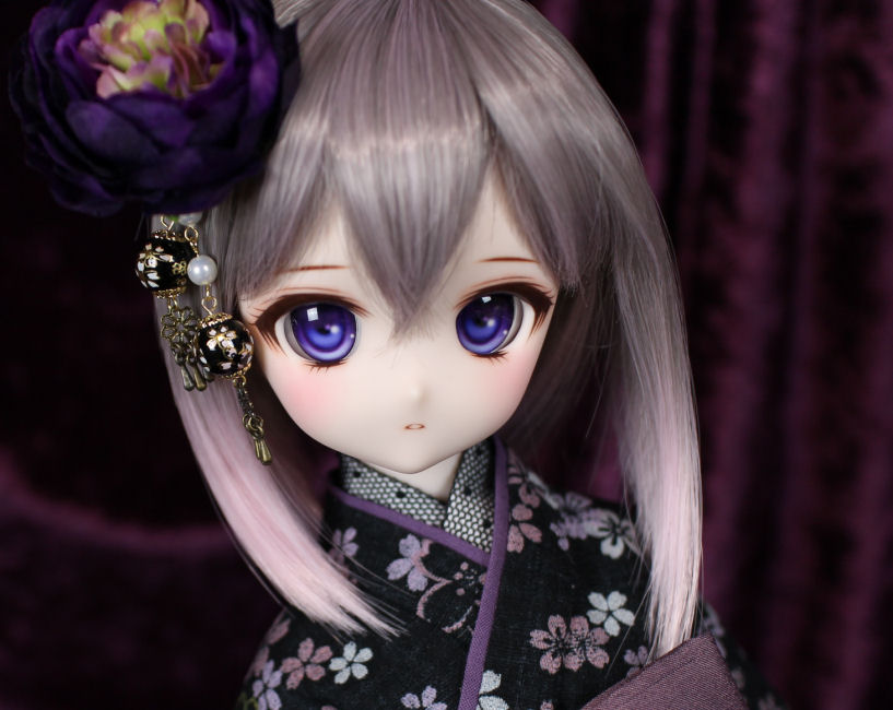 アイは自作カボションアイの長07 桔梗(ききょう)24mmです。