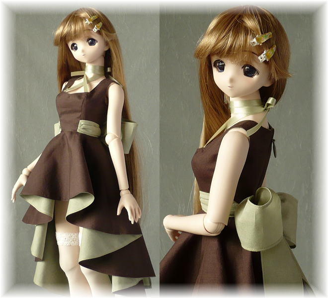 ドルフィードリームM胸用衣装・2色使いのノースリーブワンピース(抹茶)