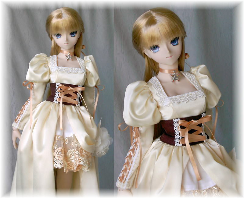 ドルフィードリームM胸用衣装・二重スカートのロングドレス・クリーム色