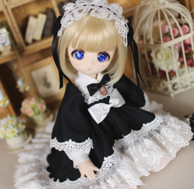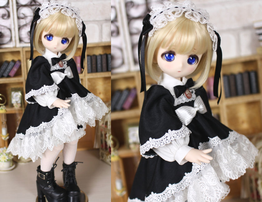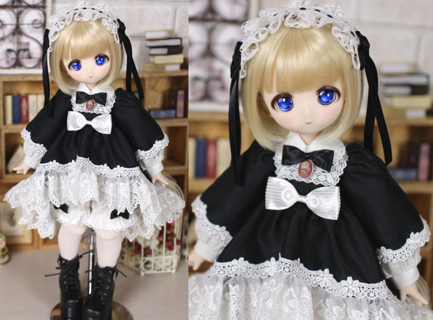 Kumakoちゃん用衣装・重ね着ワンピースセット(黒) 2021.5制作 Kumakoちゃんをお迎えして最初に作った衣装です。 ブラウスとワンピースの重ね着になっています。 Kumakoちゃんの愛らしい体型を生かすことを意識して作りました。 スカートの裾からチラ見えするドロワーズがポイントです(#^.^#)