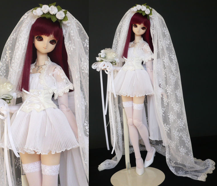 一度は大きいドールサイズで作ってみたかった、ウェディングドレスです。