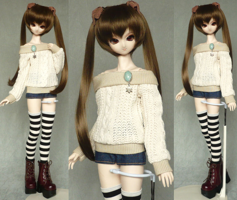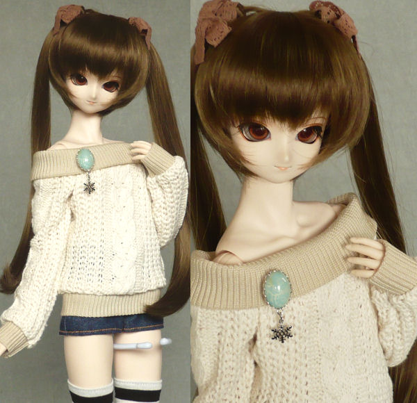 セーター、ショートパンツ、ソックス(2足)、ブローチ。