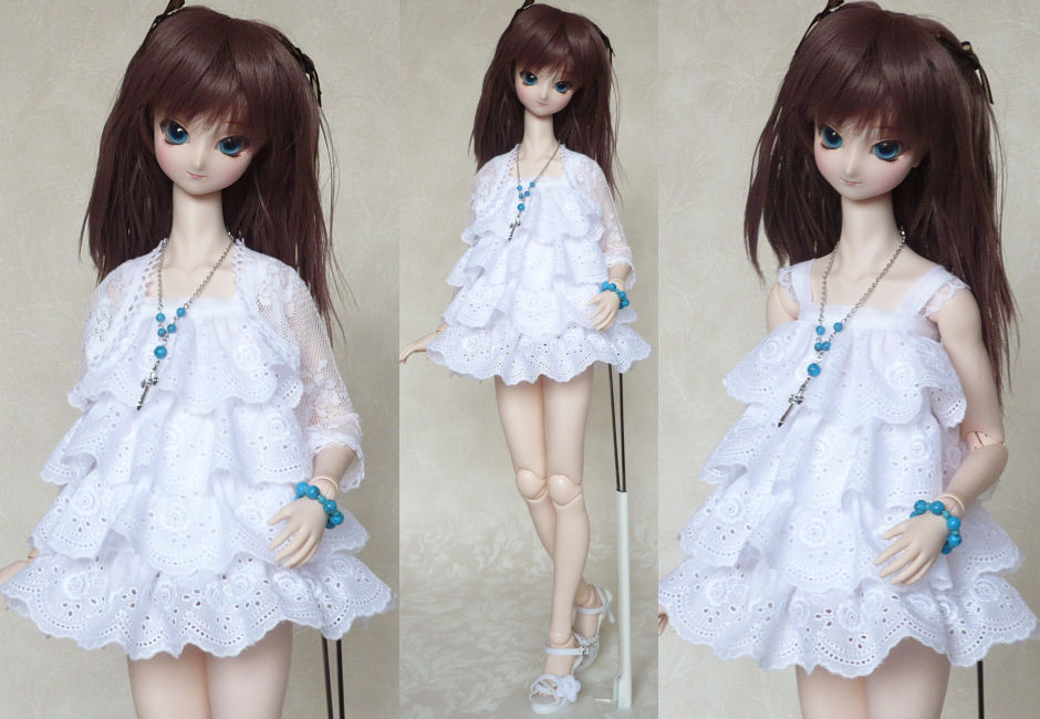 キャミワンピは、白の綿レースと白の綿ローンを使用しています。