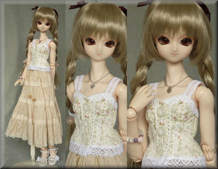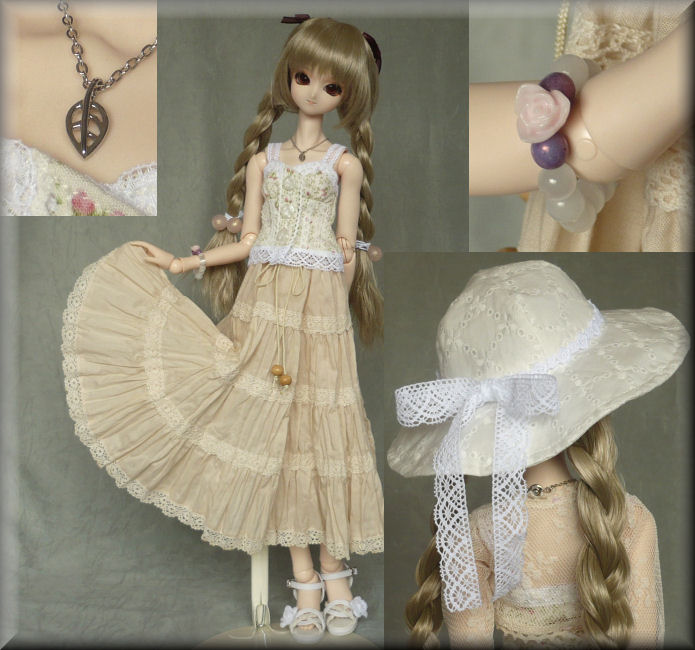 スカートは、ベージュの綿ローンを使用しています。