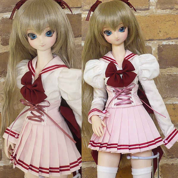 量産版では半袖だったセーラー服を、長袖で作ってみました。 袖以外の形は、量産版と同じです。 せっかくバージョン違いを作るなら・・・と、色も変えてみました。 セット内容は、 ブラウス、スカート、コルセットベルト、ソックス。 以上4点です。