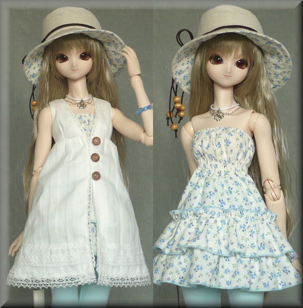 ワンピは、胸の上下をゴムシャーリングで絞った、