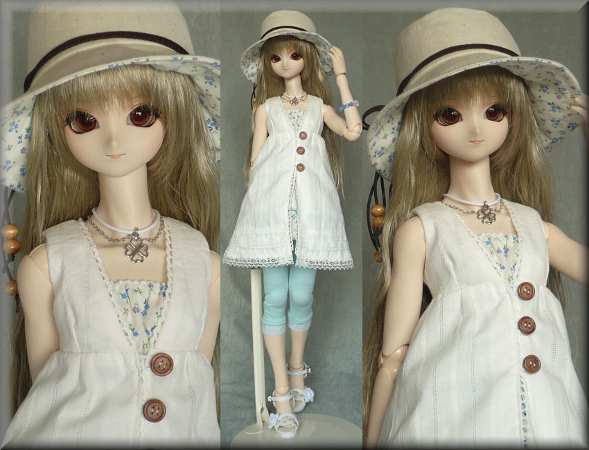 チュニック、ワンピース、レギンス、帽子、チョーカー、ブレスレット。
