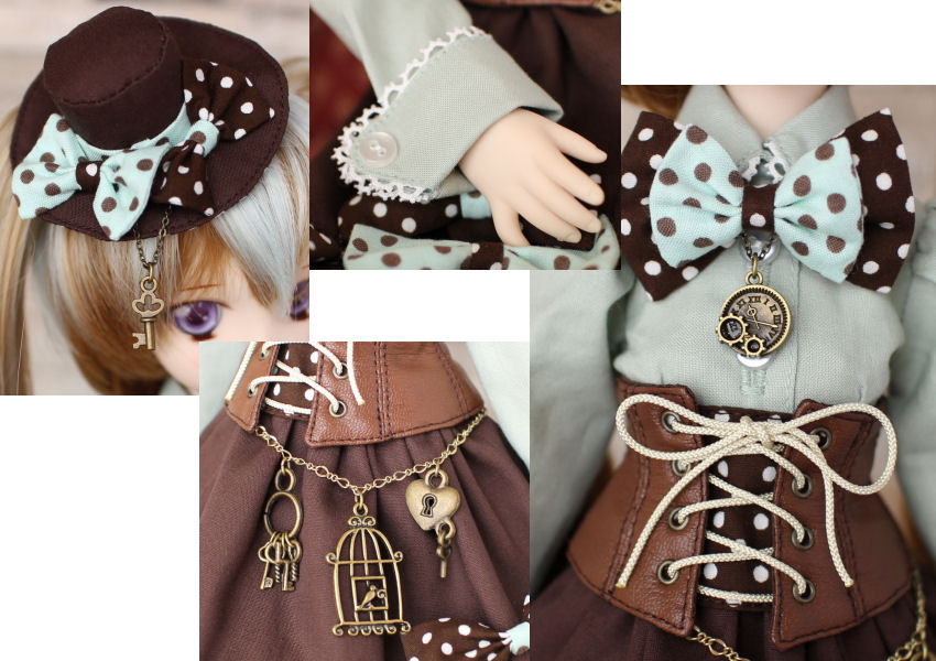 ブラウス・スカート・コルセット・リボンブローチ・ミニハット・チェーンベルト