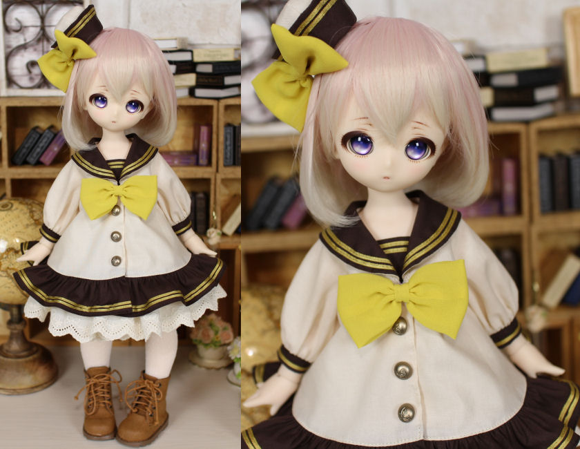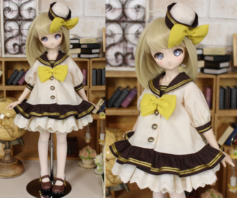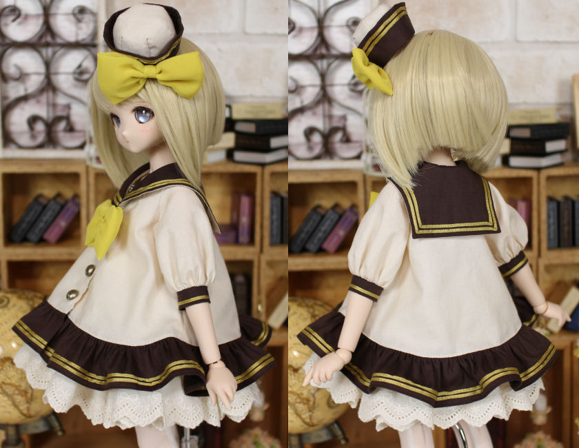 MDDとKumakoで共用できるよう作ったセーラーワンピです。 たくさんの色バリエーションで作っていて、販売継続中です(2025.1現在) 画像のカラーのみ、ラインに使っているサテンリボンがなくなったため販売終了しています。 ↓アンダースカートはパニエを兼ねていて、ボリュームたっぷりです。 ↓背が低いKumakoちゃんが着るとちまっとした感じで可愛いです。