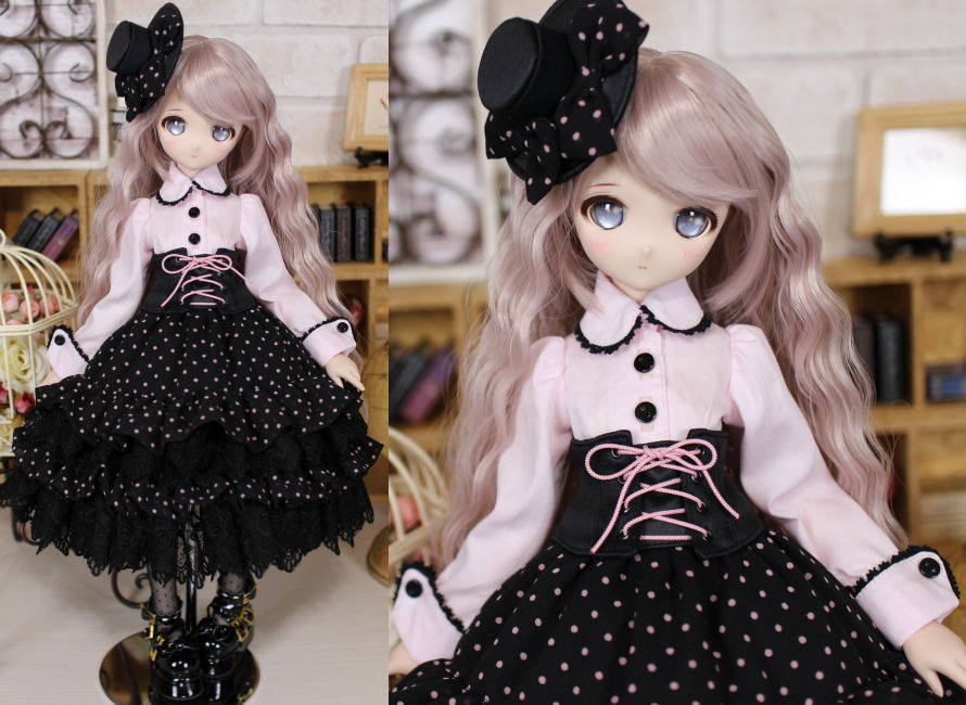 MDD・S胸用 ブラック水玉セットアップ(ピンク)