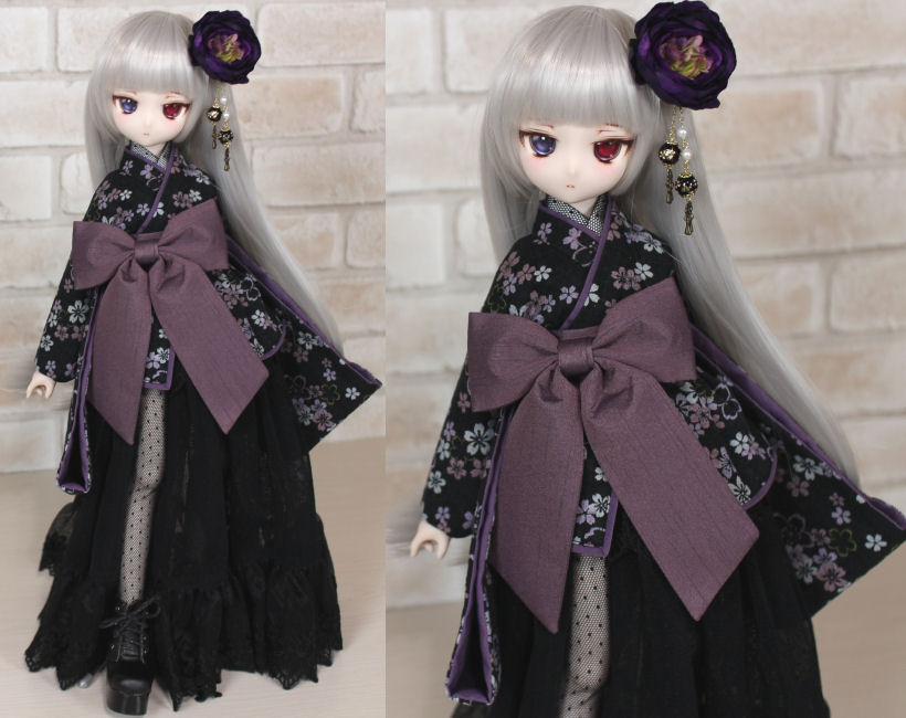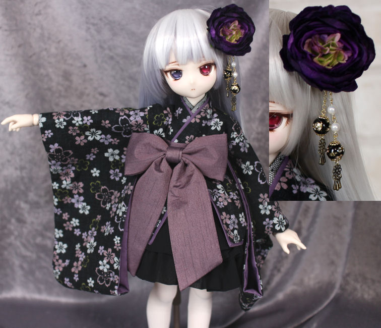 MDD用のセット衣装です。 上衣・アンダースカート・帯・簡略襦袢・髪飾り・着付け用ゴム の6点セットです。 ロングスカート版とミニスカート版の2種類作りました。 画像の色は完売していますが、別の色柄は販売継続中です(2025.1現在) ↓こちらがミニスカート版です。